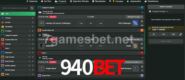O 940bet oferece uma grande seleção de opções de apostas em e-sports com probabilidades competitivas